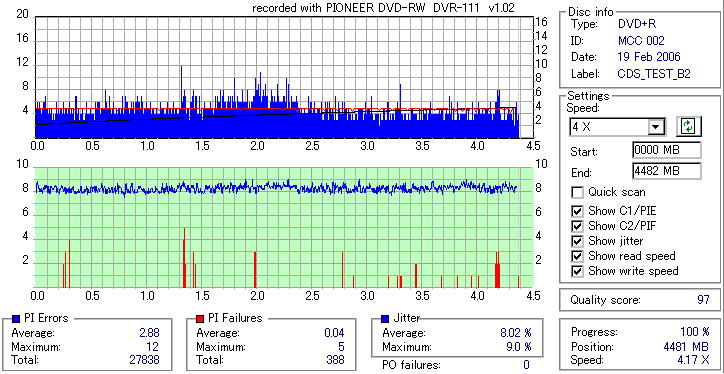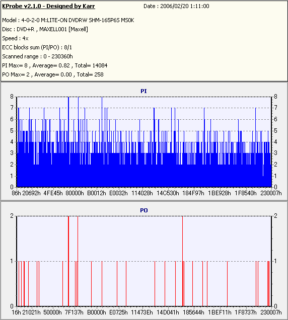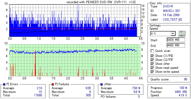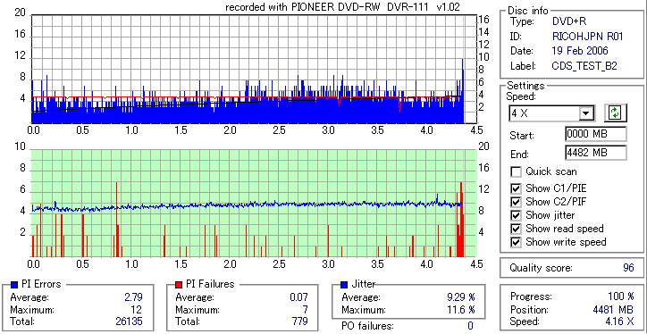 pioneer DVD-RW/+RW/RAM SuperMulti 16x/5x DVR-111 -DVD+R Burn Quality Test- |