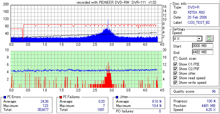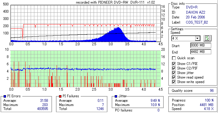 pioneer DVD-RW/+RW/RAM SuperMulti 16x/5x DVR-111 -DVD-R Burn Quality Test- |