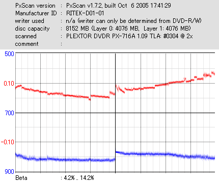 ここでは2層メディアを扱います。 RiTEKが思いのほかまともに焼けてたりしますが、エラー値的にも微妙ですし、普通に考えて三菱でしょうね。 |