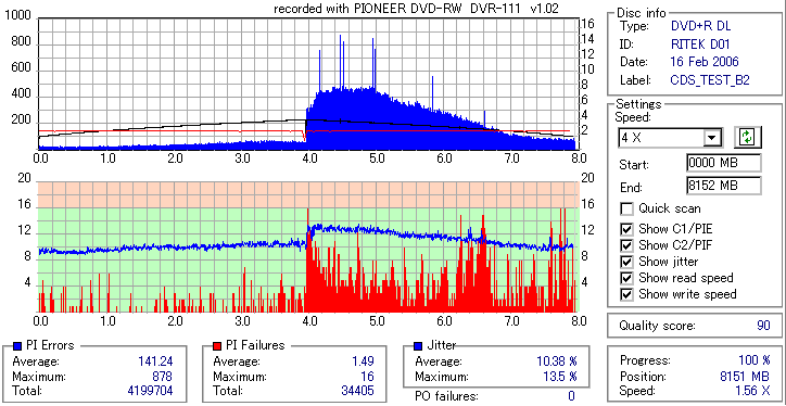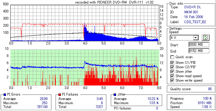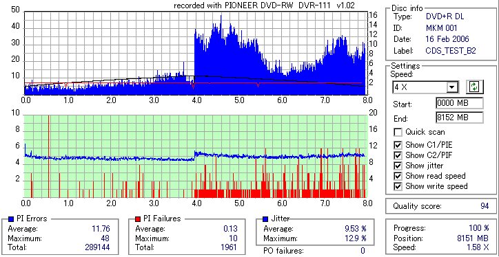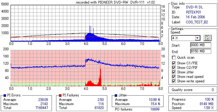 pioneer DVD-RW/+RW/RAM SuperMulti 16x/5x DVR-111 -DVDR DL Burn Quality Test- |