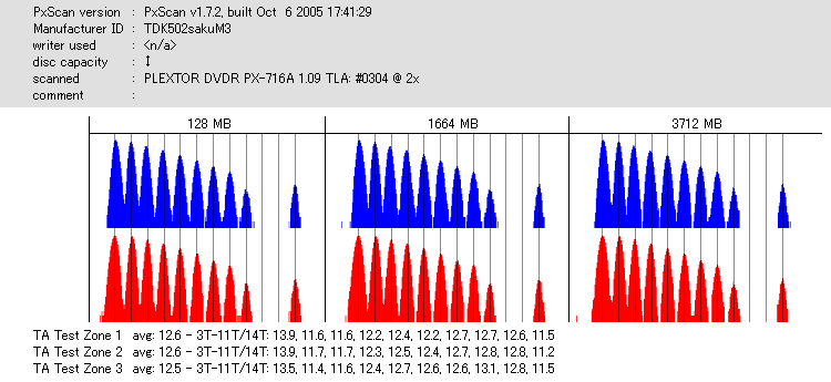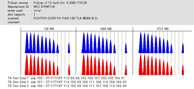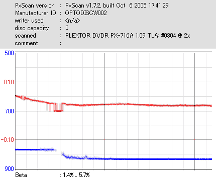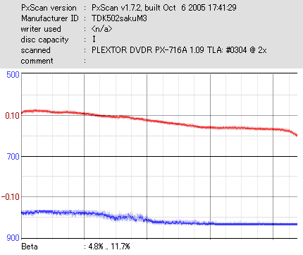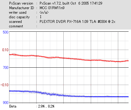 ここではDVD-RW全般について扱います。 全体的に見て、焼き品質は良好な方だと思われます。 ややBeta高めの傾向ですが、ND-4550Aのように他のドライブでマウントしなくなるような不具合は無いっぽいです。 他のドライブに比べてリライタブルメディアの消去が安定してるドライブでもあるので、 それも相俟ってRW系メディアに対しても結構使い勝手は良いんじゃないかと思います。 |