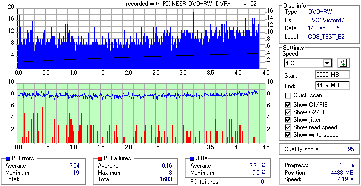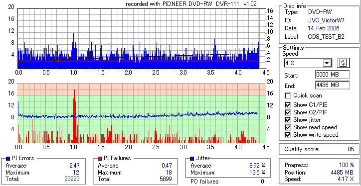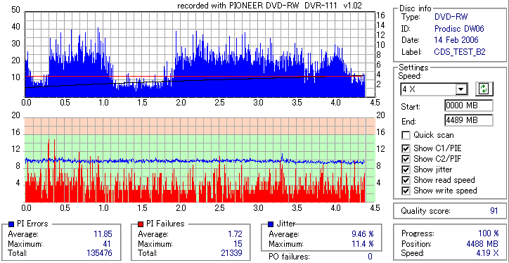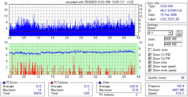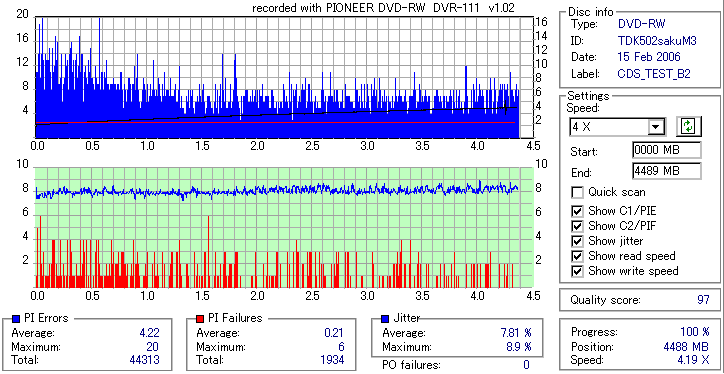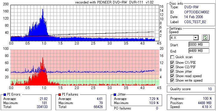 pioneer DVD-RW/+RW/RAM SuperMulti 16x/5x DVR-111 -DVD-RW Burn Quality Test- |