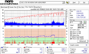 SONY16倍は+Rのみ18倍速記録が許可されています。 外周の方で変にグラフが跳ねてたりはしますが、基本的には良好っぽいです。 +RWについてはさすが唯一の国産といったところ。なかなか素敵な結果です |