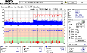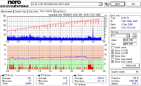 CMC16倍は+Rのみ12倍制限がかかってます。 +-ともに比較的良好な結果で、-R8倍は12倍でも焼けたりするようです。 DLメディアは…使えないほどではないにしろ、ちょっとレイヤー切り替え地点が不安な結果。 |