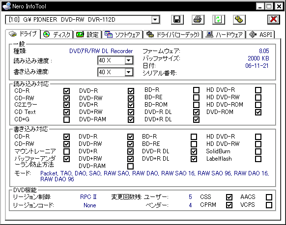 Pioneer DVR-112Dの記録性能・相性等の検証ページ |