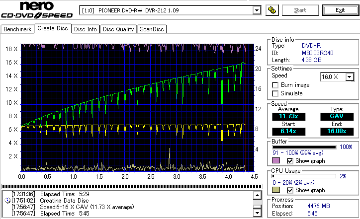 - CDSpeedでのデータディスク作成時の速度グラフ -