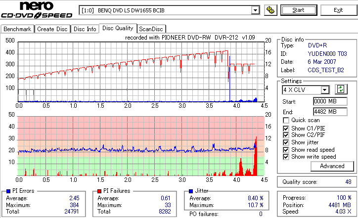CDSpeed Quality Scan with BenQ DWxxxx