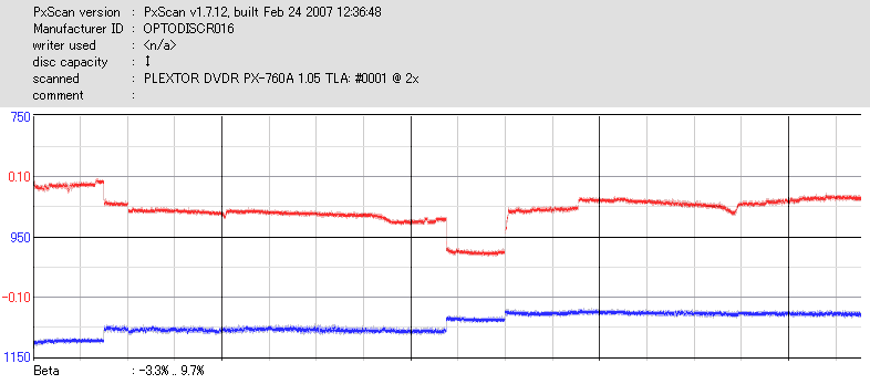- PX-760AでのPlexTools Q-check PI/POのグラフ -