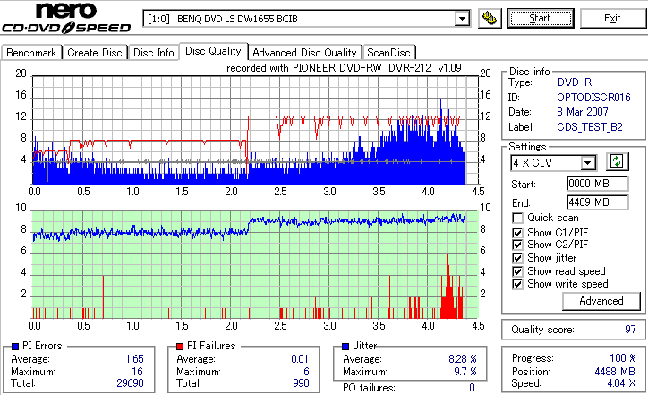 CDSpeed Quality Scan with BenQ DWxxxx