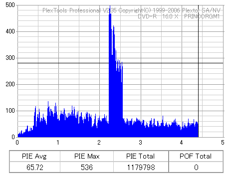 PlexTools Professional Q-Check PI/PO with PLEXTOR PX-760A - PX-760AでのPlexTools Q-check PI/POのグラフ - |