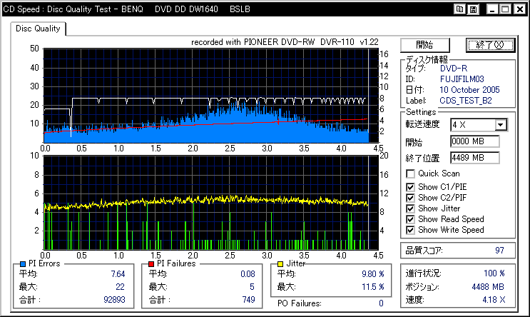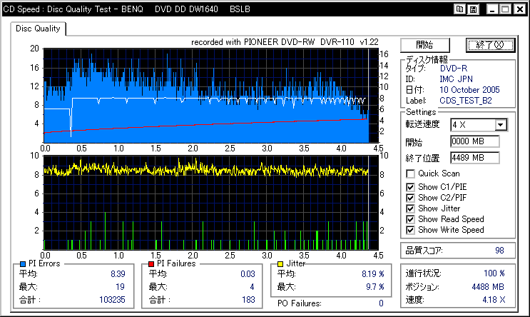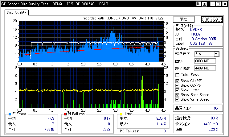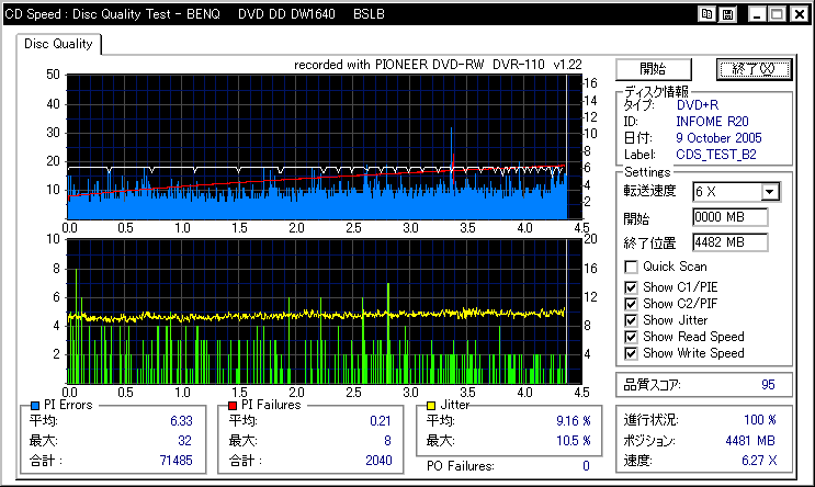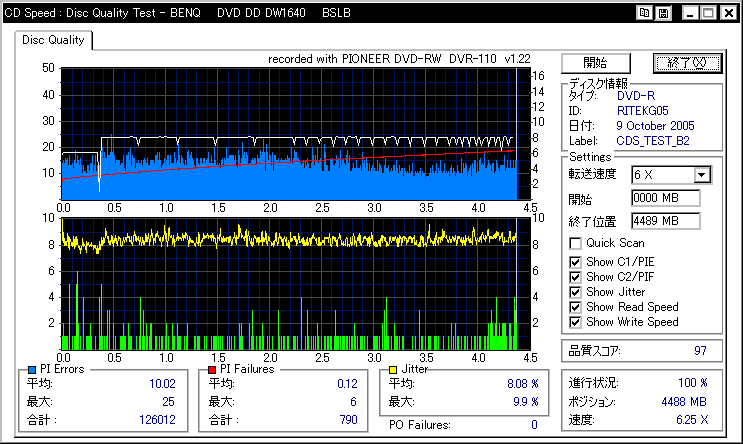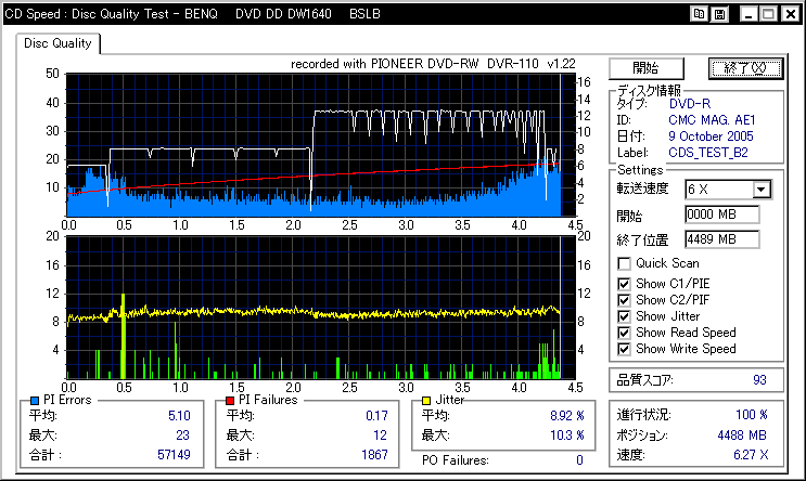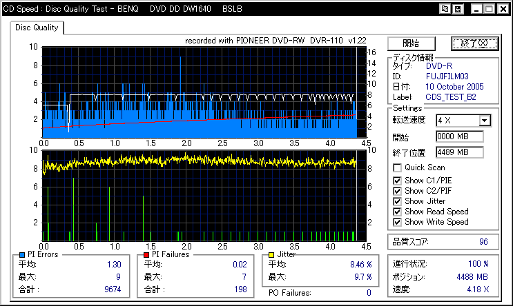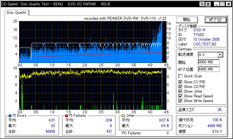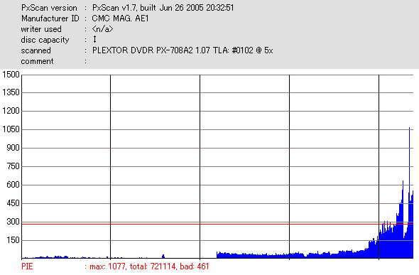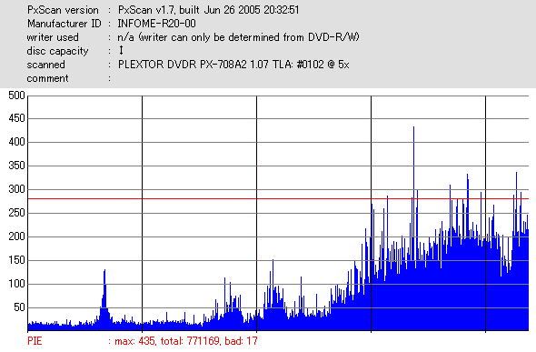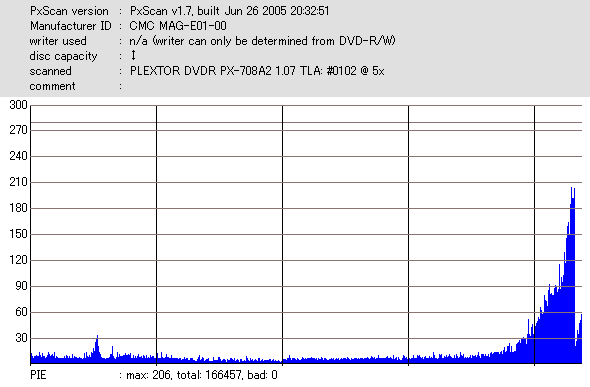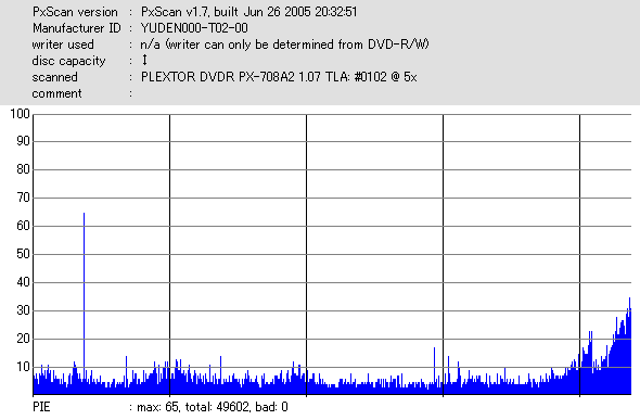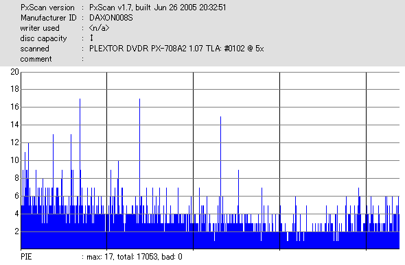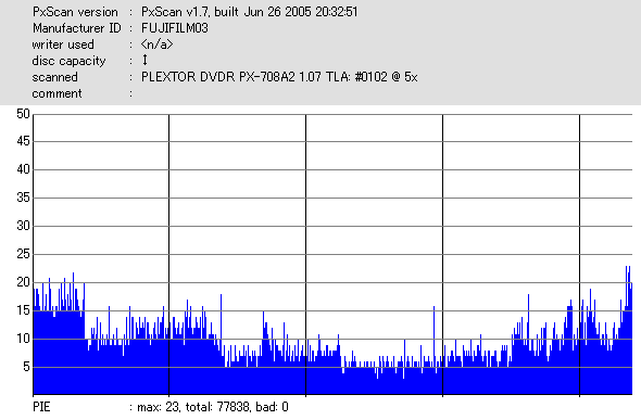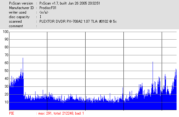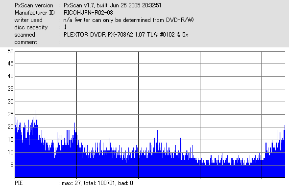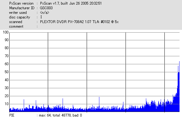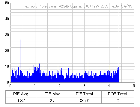 DVR-110と相性良かったメディアなのですが……ちょっとPIF多めに焼きあがってしまいました。 |