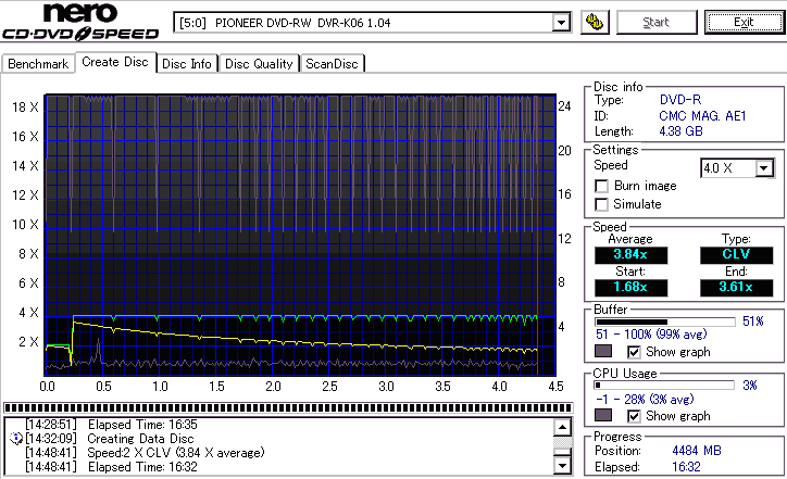 - CDSpeedでのデータディスク作成時の速度グラフ -