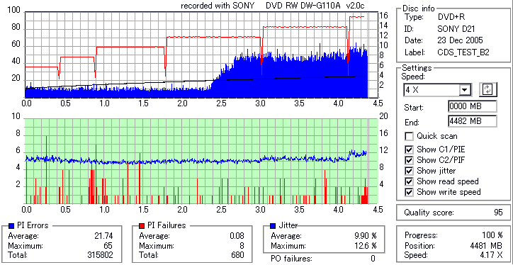 SONY DVDRW/RAM 16x/5x SuperMulti DW-G110A -DVD+R Burn Quality Test- |