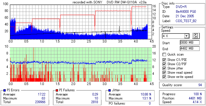 SONY DVDRW/RAM 16x/5x SuperMulti DW-G110A -DVD+R Burn Quality Test- |
