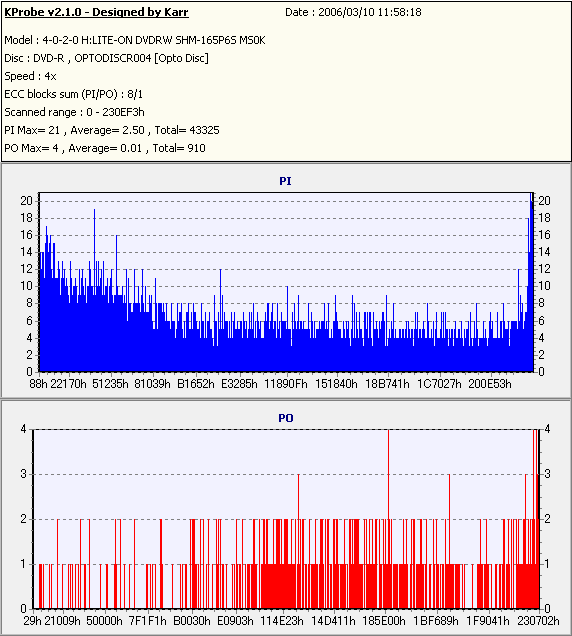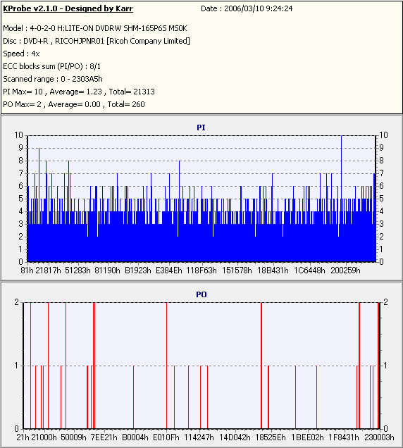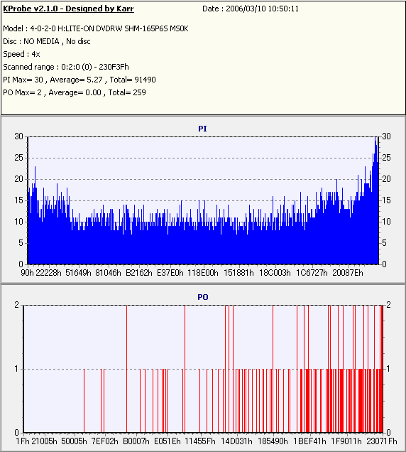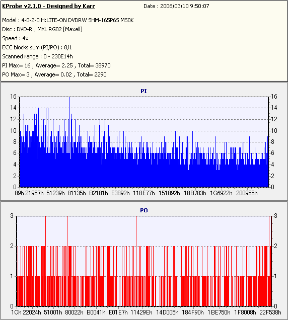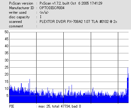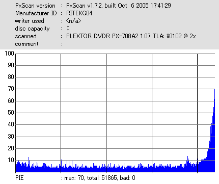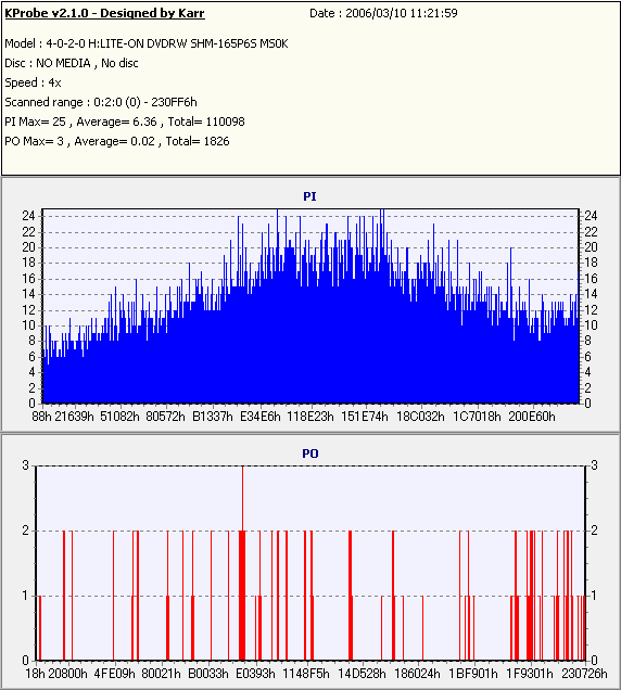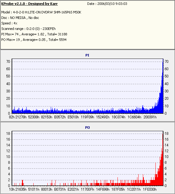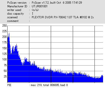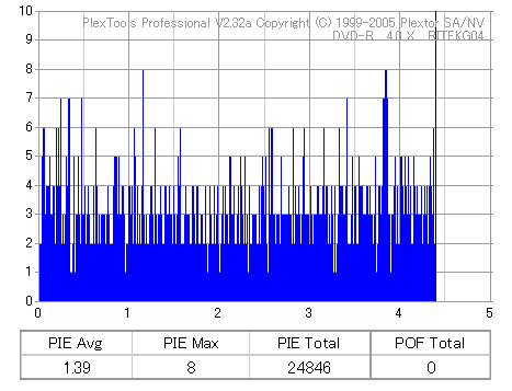 最近色々な店で取扱いの増えてる激安ドライブ・DW-G110Aですが、4倍速の焼きが良くない気がしたので急遽追加検証を行います。 結果は……これは……どうもDV-W516Eの悪夢の再来って感じの結果になってしまいました。 このドライブもファームアップできのれるんでしょうか? LITEON/SONYのお手並みに期待といった所です。 |