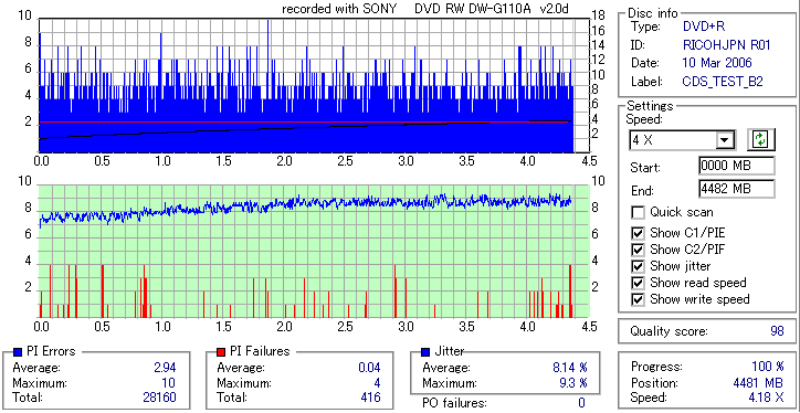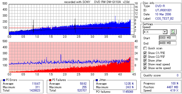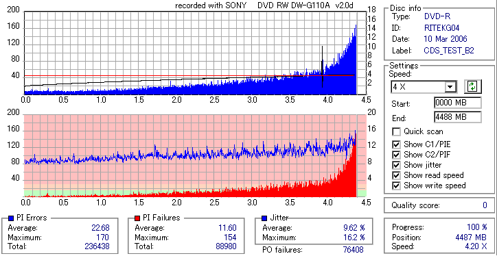 SONY DVDRW/RAM 16x/5x SuperMulti DW-G110A -DVD-R Burn Quality Test- |