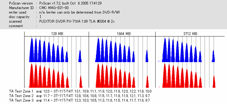 Group.Bでは台湾の主要メーカーであるCMC,DAXON,GigaStorage,Optodisc,Prodisc,RiTEKについて扱います。 サンプルが微妙なのでちょっと判断に困るのですが、CMCとか良いものはちゃんときれいに焼ける模様です。 |