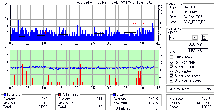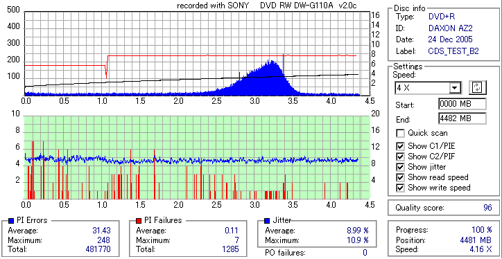 SONY DVDRW/RAM 16x/5x SuperMulti DW-G110A -DVD+R Burn Quality Test- |