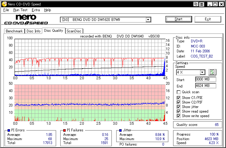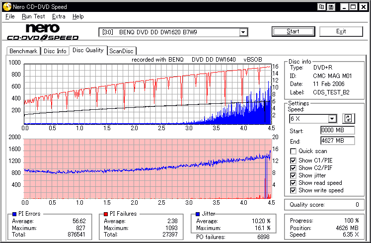 BenQ DW1640 -DVD+R Overburn Test- |