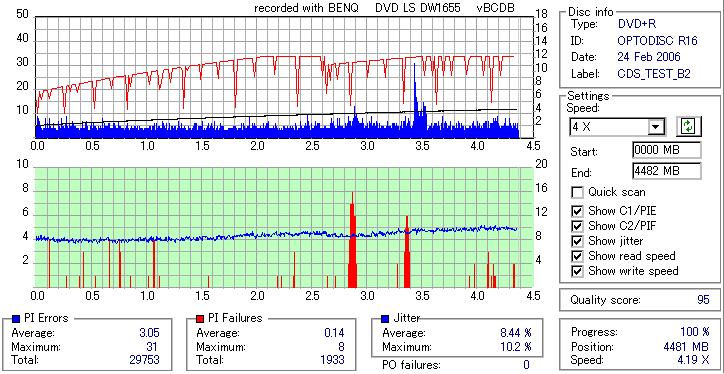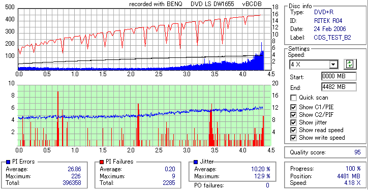 BenQ DVD-RW/+RW 16x LightScribe DW1655 -DVD-R Burn Quality Test- |
