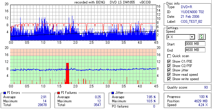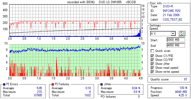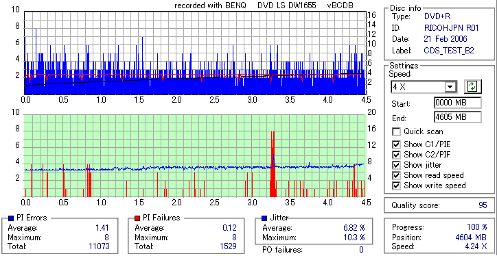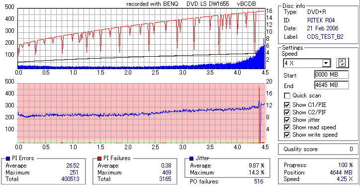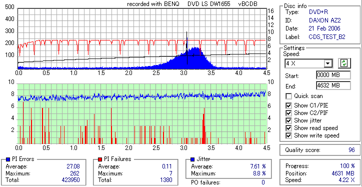 BenQ DVD-RW/+RW 16x LightScribe DW1655 -DVD+R OverBurn Quality Test- |