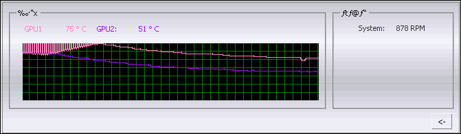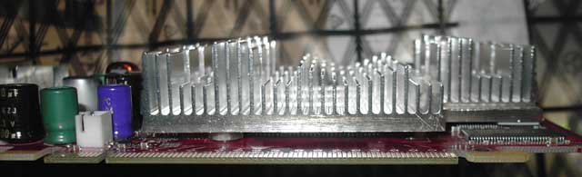 以上のような結果になりました。コアクロックはさすがに元からOCされているだけあって70MHzのUPに留まりましたが、メモリクロックはそれなりに伸びました。どちらにせよ、コア/メモリ共に定格クロックから考えればそれなりに伸びたと考えて良いと思います。 ■低発熱とはいえミドルレンジ。コア温度には注意が必要 気になったのが温度。このビデオカードには温度センサーが付いていないためシステム上からコア温度が確認できないという欠点があり、そのためSLI動作中2枚目に設置したカードへのエアフローが全く確保できていない状態でテストを行った所、熱暴走によりPCが強制停止してしまうといったトラブルが発生しました。 温度センサーについてはBIOSでソフトウェア的に無効化されているだけで、GeForce6600に使われているNV43コアには標準で搭載されているそうです。そのため、nvflashとNiBitを使用してBIOSを書き換えてやることで温度センサを有効にし、コア温度を確認できるようにすることが可能です(FDDが必要)。ここでは詳しい方法については触れませんが、googleで検索すればいくらでもヒットするので興味のある方、必要な方は自己責任の上で書き換えてみてください。 さて、BIOS書換で温度センサを有効化した後、温度計測を行ってみました。室温は約10℃です。 [1]. 【ファンレス無風 SLI idle】 ![]() [2]. 【ファンレス無風 SLI ATIToolを温度上昇が止まるまで稼動】 ![]() [3]. 【ファンレス SLI 650rpmの超低速8cmファン設置(ATIToolは回したまま)】 ![]() [4]. 【ファンレス SLI 650rpmの超低速8cmファン設置(ATITool停止、idle状態)】 ![]() [2]の結果を見ていただければ判る通り、無風運用では正直ヤバい温度まで上がります。途中でぶっ壊れるんじゃないかとヒヤヒヤしつつも、どうせ2000円だしこの際いっそ1枚生贄に捧げてもいいかって思いで温度上昇が止まるまで回し続けました。 ロード時の最高到達温度は実に120℃。ヒートシンクは触ると火傷する温度ですし、一般的なコンデンサの耐久温度(85〜105℃)もオーバーしてます。これは明らかに想定される動作温度からは外れてる気がします。 そこで、650rpmの超低速8cmファン(一般的なファンの1/3程度の風量のもの)をビデオカード付近のサイドパネルに設置してみたところ、[3] [4]のように至極実用的な温度にまで改善されました。ヒートシンク自体の大きさもあってか、少しでもエアフローがありさえすれば温度的には充分に改善されるようです。 チップの発熱自体はそう大きくないようですが、窒息ケース等での無風運用には大いに気をつけるべきでしょう。 |
