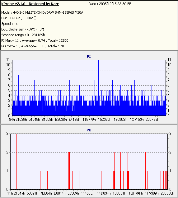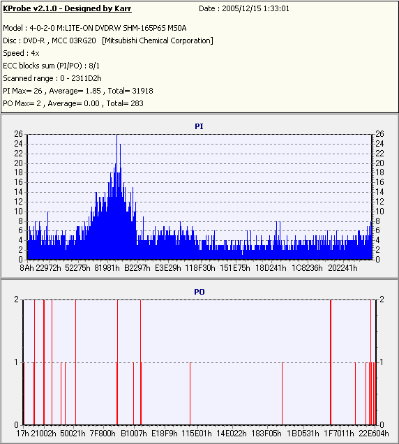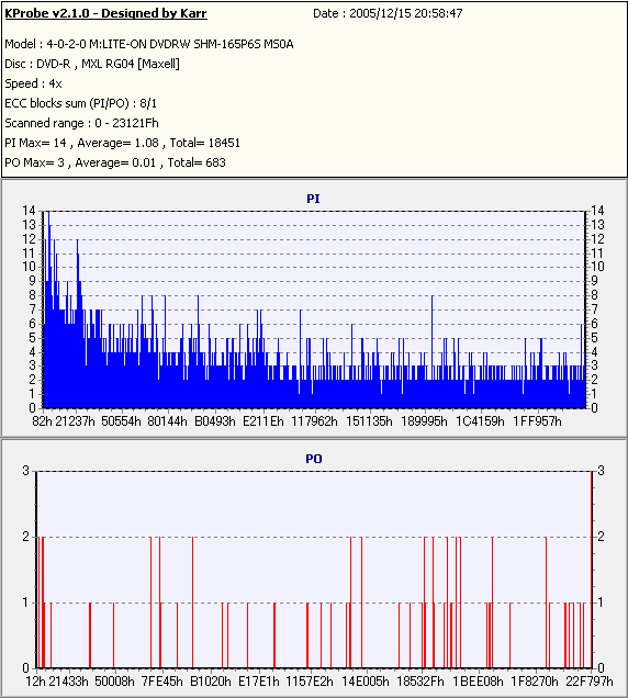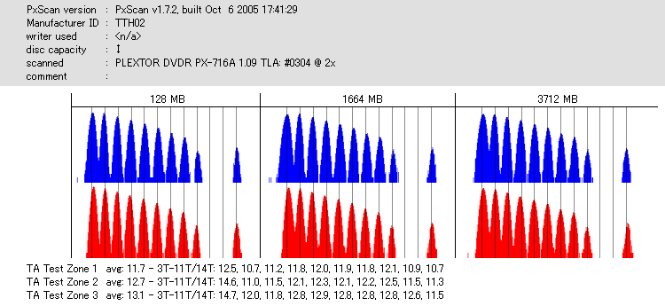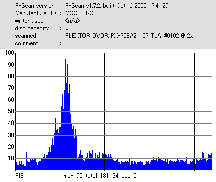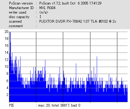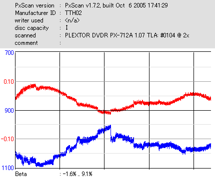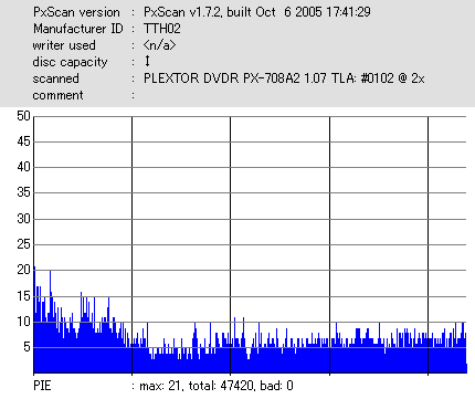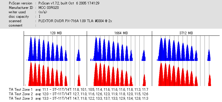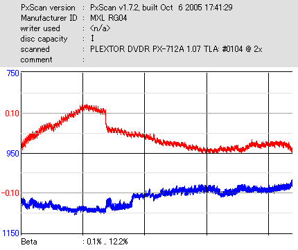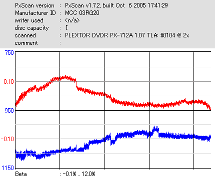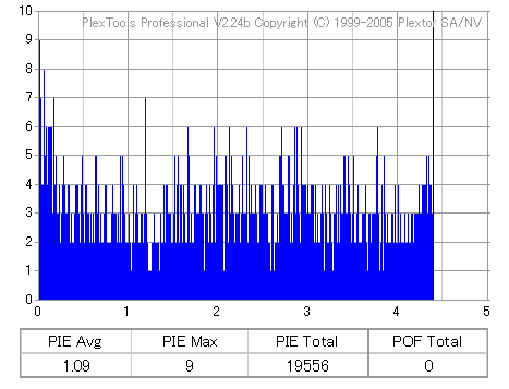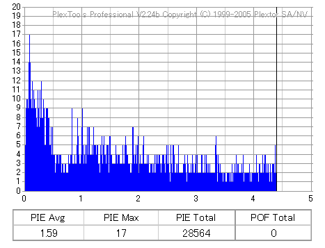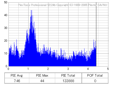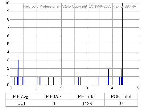 Group.Aでは主に国産(Made in Japan)のメディアや国内有名ブランドのメディアを扱います。 で、焼いてみた感じですが。非常に困った結果になりました。 PX-716AやSHM-165P6S等の計測結果を見る限りエラー自体は低いみたいなんですが、 DW1640で計測すると途端に……って感じ。 何か初期ファームのDV-W516Eあたりを髣髴させるグラフですね。 エラー値はともかく、再生互換性にやや難があるんじゃないかって気がします。 |