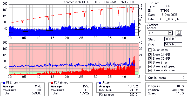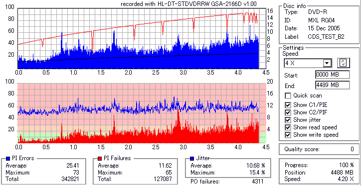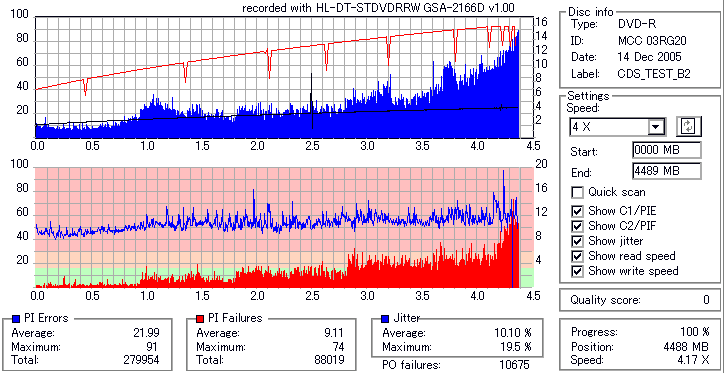 Hitachi-LG DVDRW/RAM 16x/5x LightScribe/USB2.0 SuperMulti GSA-2166D -DVD-R Burn Quality Test- |