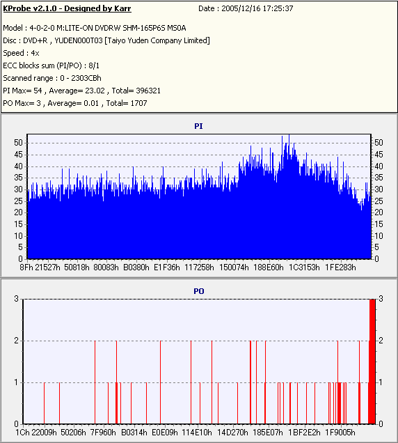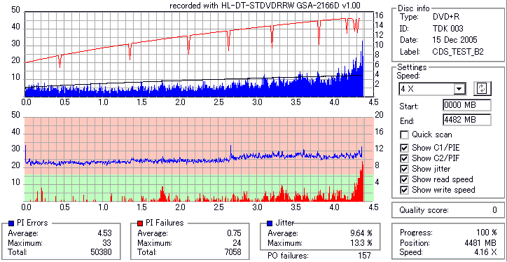 Hitachi-LG DVDRW/RAM 16x/5x LightScribe/USB2.0 SuperMulti GSA-2166D -DVD+R Burn Quality Test- |