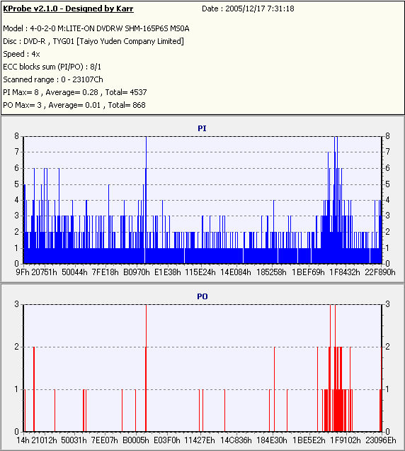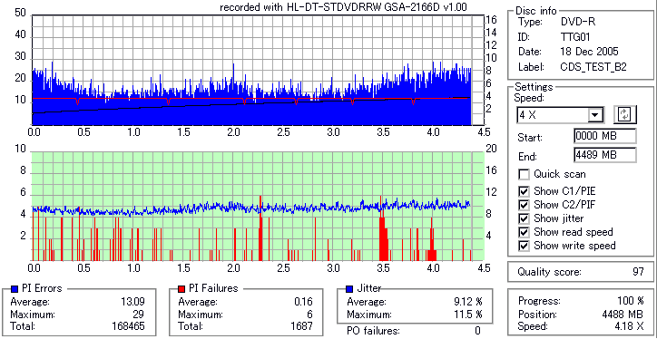 Hitachi-LG DVDRW/RAM 16x/5x LightScribe/USB2.0 SuperMulti GSA-2166D -DVD-R Burn Quality Test- |