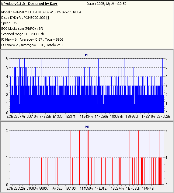 Hitachi-LG DVDRW/RAM 16x/5x LightScribe/USB2.0 SuperMulti GSA-2166D -DVD+R Burn Quality Test- |