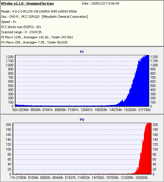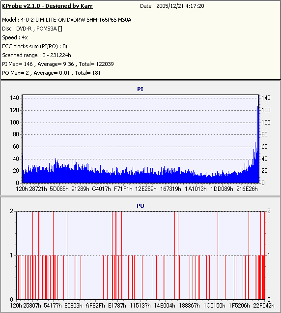 Hitachi-LG DVDRW/RAM 16x/5x LightScribe/USB2.0 SuperMulti GSA-2166D -DVD-R Burn Quality Test- |