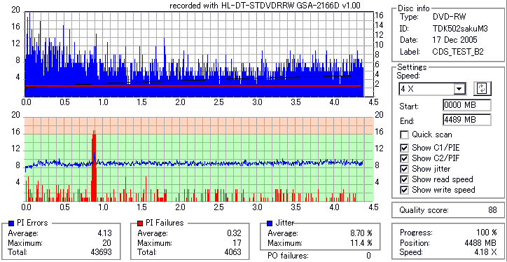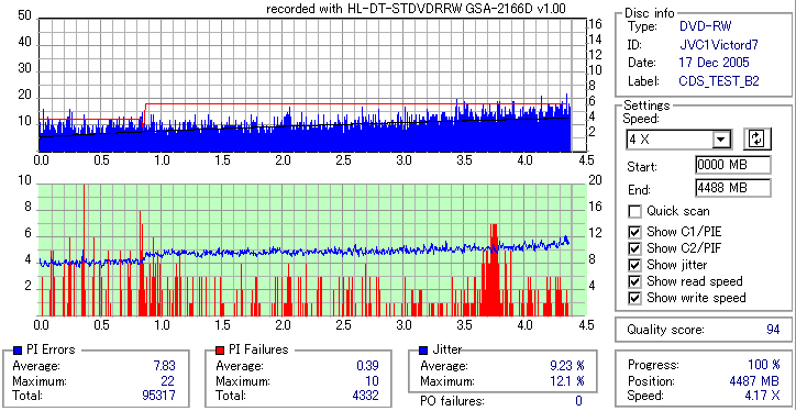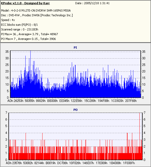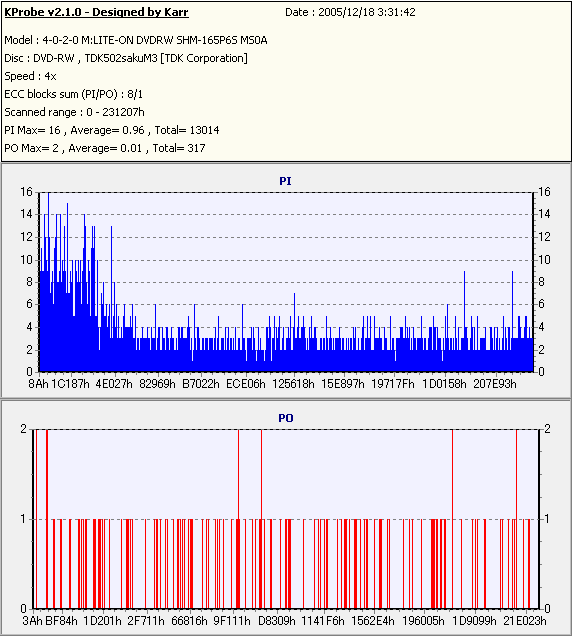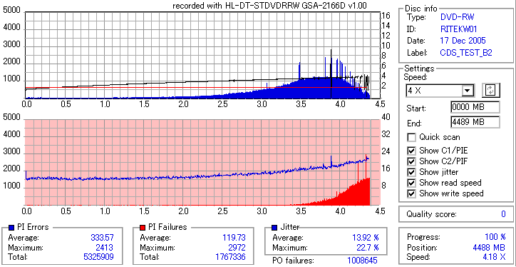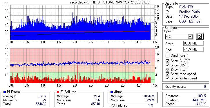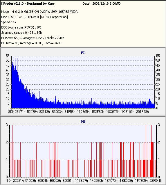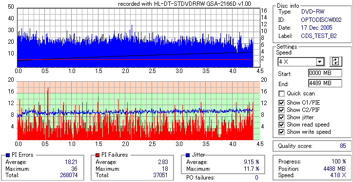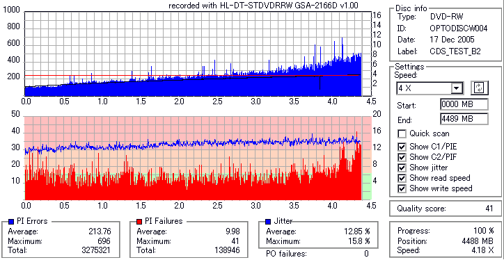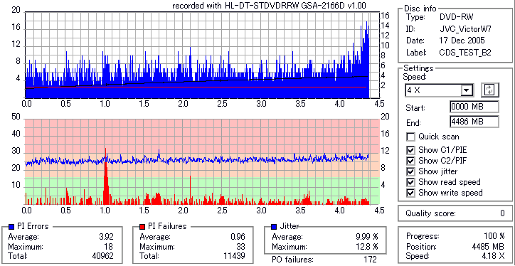 Hitachi-LG DVDRW/RAM 16x/5x LightScribe/USB2.0 SuperMulti GSA-2166D -DVD-RW Burn Quality Test- |
