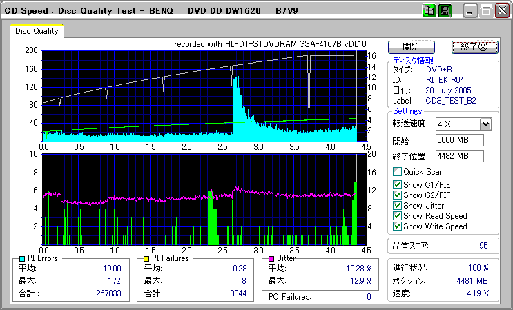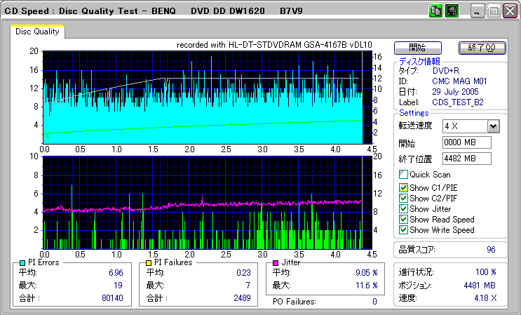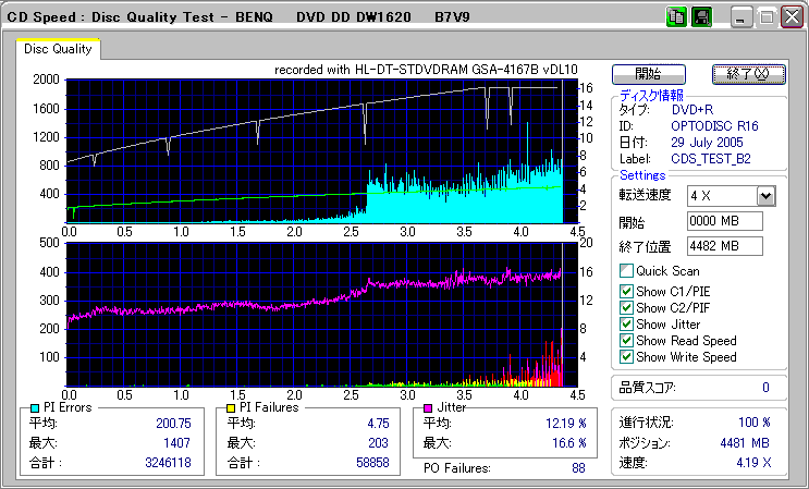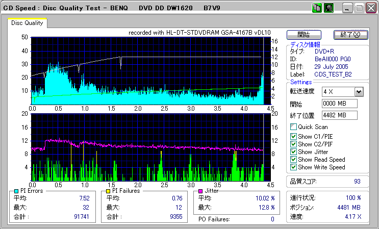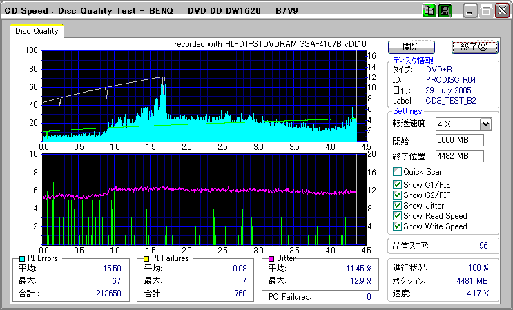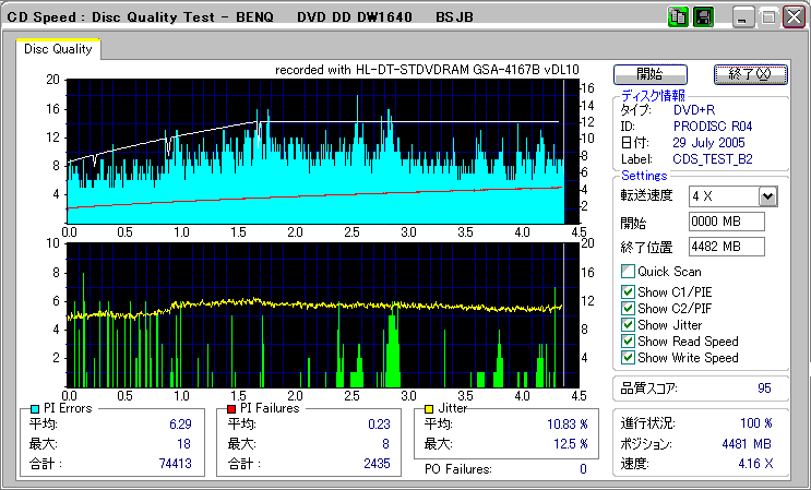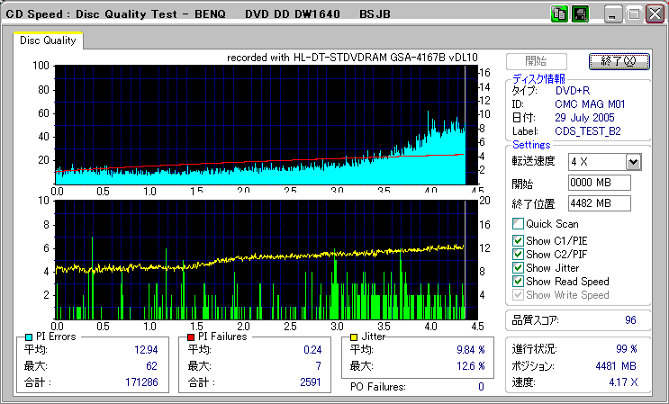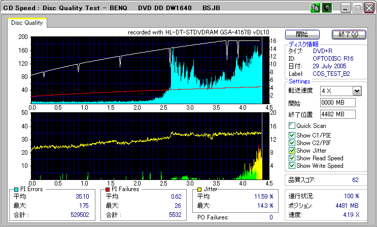 CDSpeed "CD Quality test" with BenQ DW1620R_(4x CAV) |