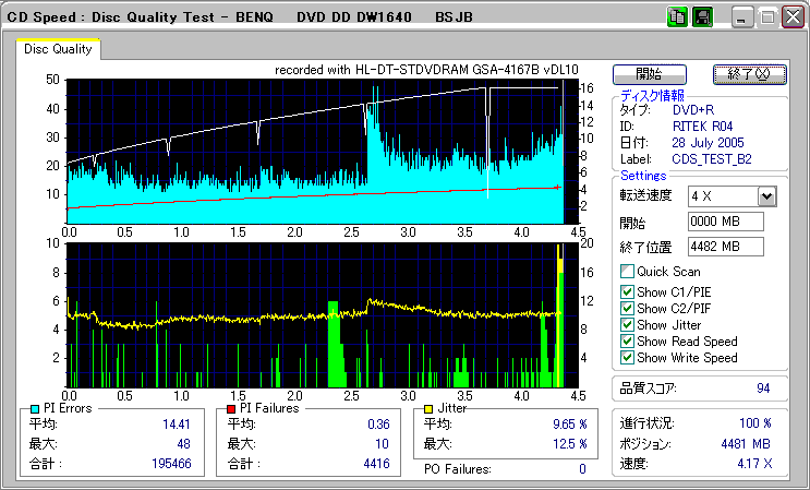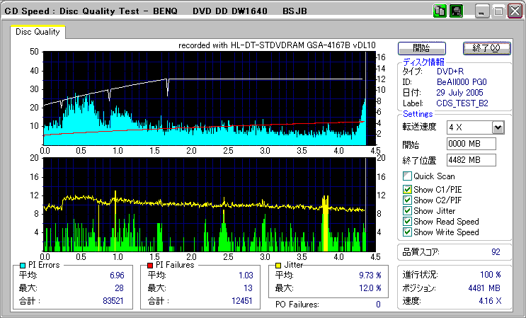 CDSpeed "CD Quality test" with BenQ DW1640_(4x CAV) |