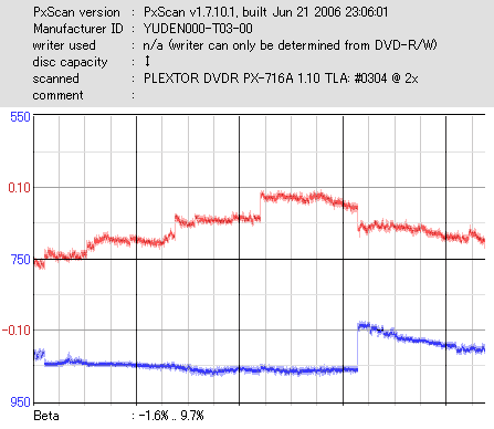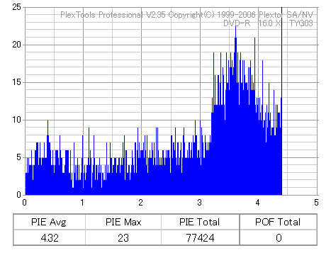 ![]() 既に検証ページで使ってますが、密かに購入しておいたBuffaloのDVSM-X1218FB。 中身はHitachi版のGSA-H12N。PC-Successにて\7080也。 ![]() ラベルの表示はしっかりGSA-H12Nになってます。 これからこいつと先ほど作成したGSA-H10N@H12Nの18倍速での記録品位を比べてやることにしましょう。 とりあえず、現状で18倍速が選択可能なメディアは以下の6種のIDを持つものです。 TYG03 MXL RG04 MCC 03RG20 YUDEN000-T03 MAXELL-003 MCC-004 ・・・と、下の検証結果はちょっと長くなるので結論だけここに書いてしまうと、 H12N化したH10Nですが、結構普通に使えそうです。 細かいところで純正と異なる結果も出ていたりしますが、両者一長一短というかただの個体差っぽいので、 少なくともH12N化したH10Nが全然駄目駄目ってことはなさそうです。 H10Nの市場価格は今どんどん下がってますから、H12N化はなかなか使えそうな気がします。 |