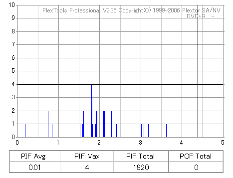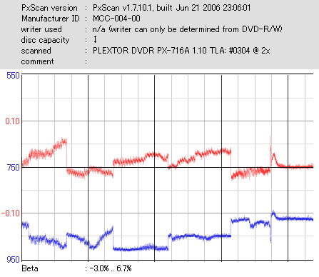![]() Verbatim DVD+R 16x (MCC-004 made in Taiwan[prodisc]) 次は、海外では16倍速以上でのScanの定番となっているMCC-004、Verbatimブランドの16倍速+Rです。 |