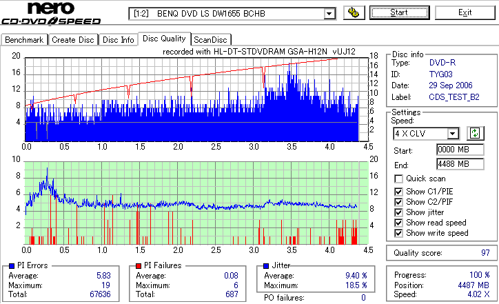 Hitachi-LG DVD-RW/+RW/RAM 18x/12x GSA-H12N(DVSM-X1218FB) -Burn Quality Test- |