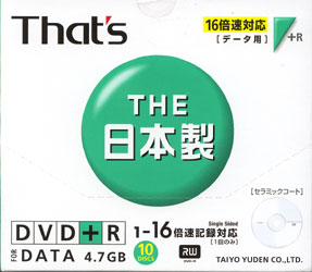 ![]() That's DVD+R 16x(YUDEN000 T03 made in Japan) 誘電の+Rも一応。やっときましょう。 |