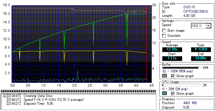 -データディスク作成による速度グラフ-