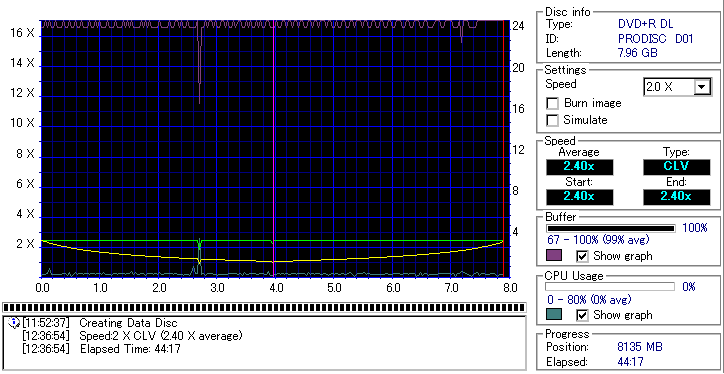 CDSpeed "Create data disc" -データディスク作成による速度グラフ- |