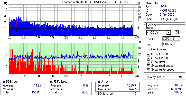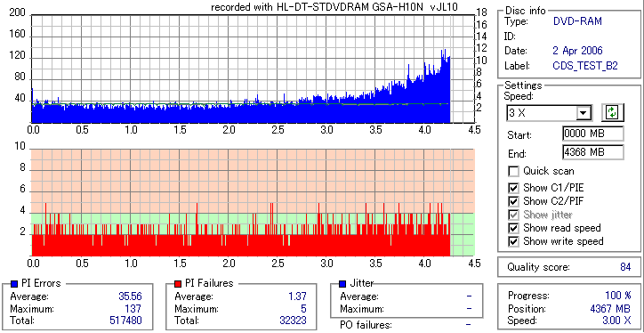 Hitachi-LG DVD-RW/+RW/RAM 16x/12x GSA-H10N -Burn Quality Test- |