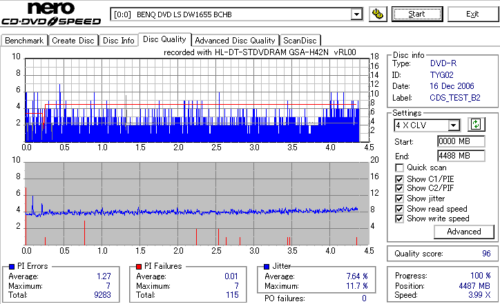 - BenQドライブでのCDSpeed 品質テストグラフ -