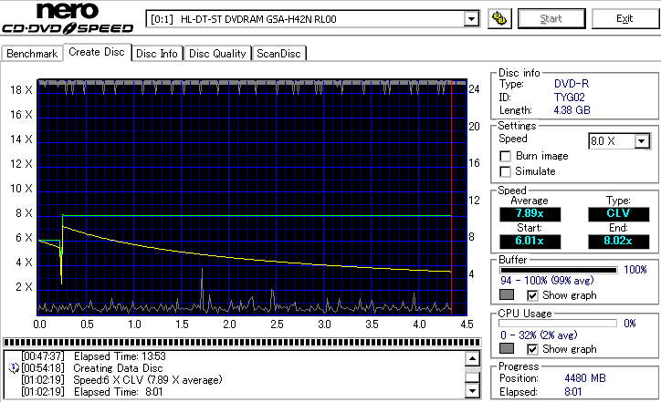 - CDSpeedでのデータディスク作成時の速度グラフ -