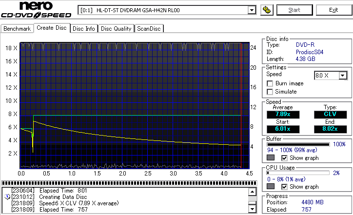 - CDSpeedでのデータディスク作成時の速度グラフ -