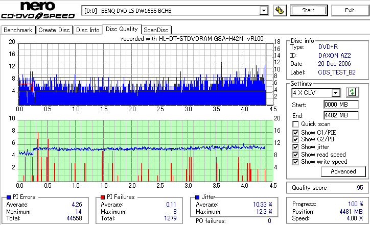 - BenQドライブでのCDSpeed 品質テストグラフ -