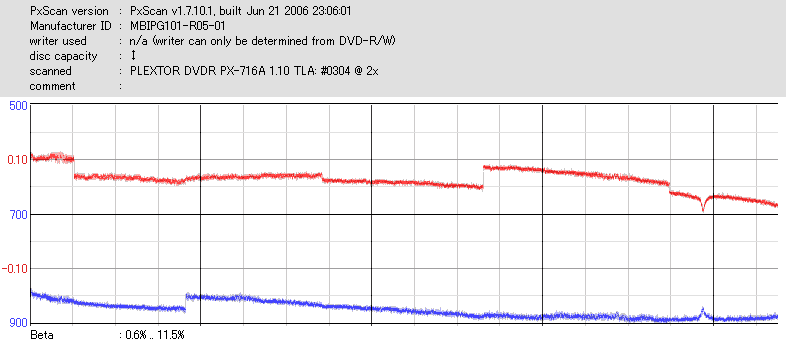 - PX-760AでのPlexTools Q-check PI/POのグラフ -