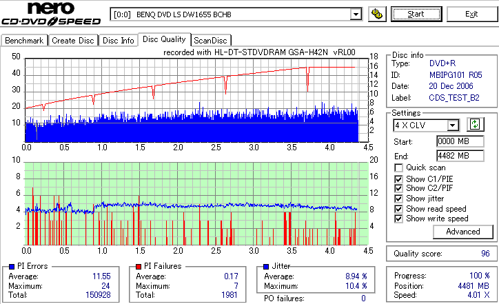 CDSpeed Quality Scan with BenQ DWxxxx