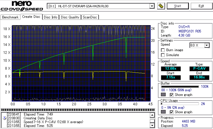 - CDSpeedでのデータディスク作成時の速度グラフ -