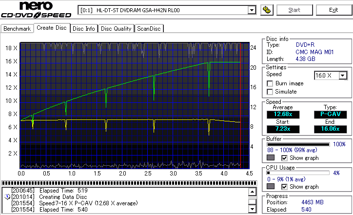 - CDSpeedでのデータディスク作成時の速度グラフ -